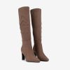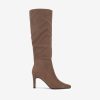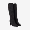| Detalhes | BOTA DE CANO ALTO EM MICRO FIBRA CAMURÇA DE SALTO COM FECHO NO LADO INTERIOR E FORMA PONTIAGUDA |