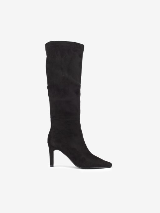 | Detalhes | BOTA DE CANO ALTO EM MICRO FIBRA CAMURÇA DE SALTO COM FECHO NO LADO INTERIOR E FORMA PONTIAGUDA |